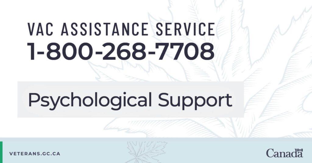 A confidential and free service available 24/7, 365 days a year to Veterans, former RCMP members, their family members, and caregivers.